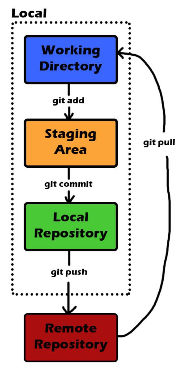 - git commit: Valide les modifications du “staging area” dans l'historique du référentiel.