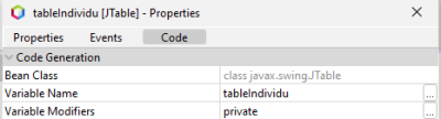 Dès que l'on dispose d'un container graphique, par exemple, une JFrame, on peut créer une JTable en mode Design: